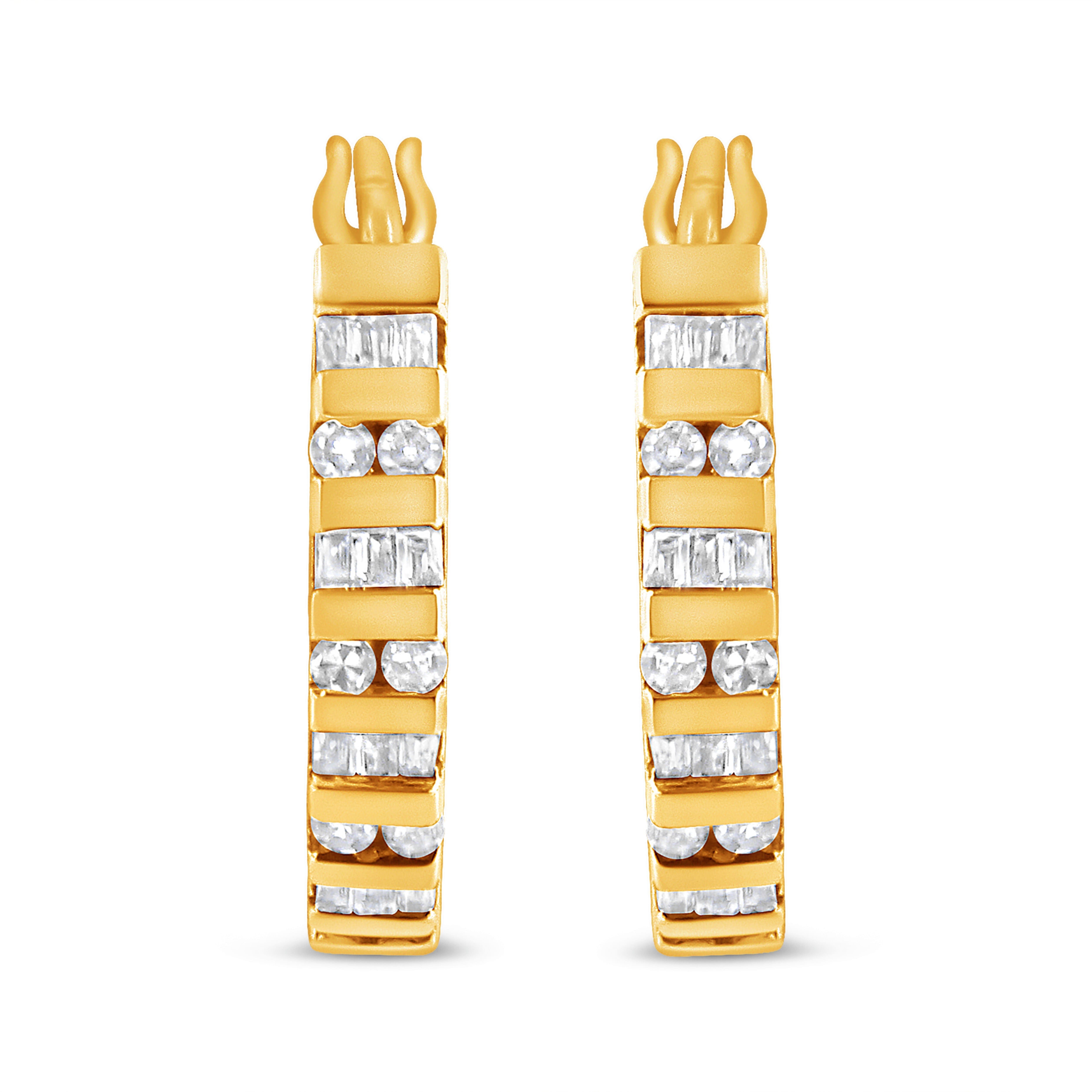 10K Yellow Gold 1.0 Cttw Round and Baguette-Cut Diamond Hoop Earrings (I-J Color, I2-I3 Clarity)
