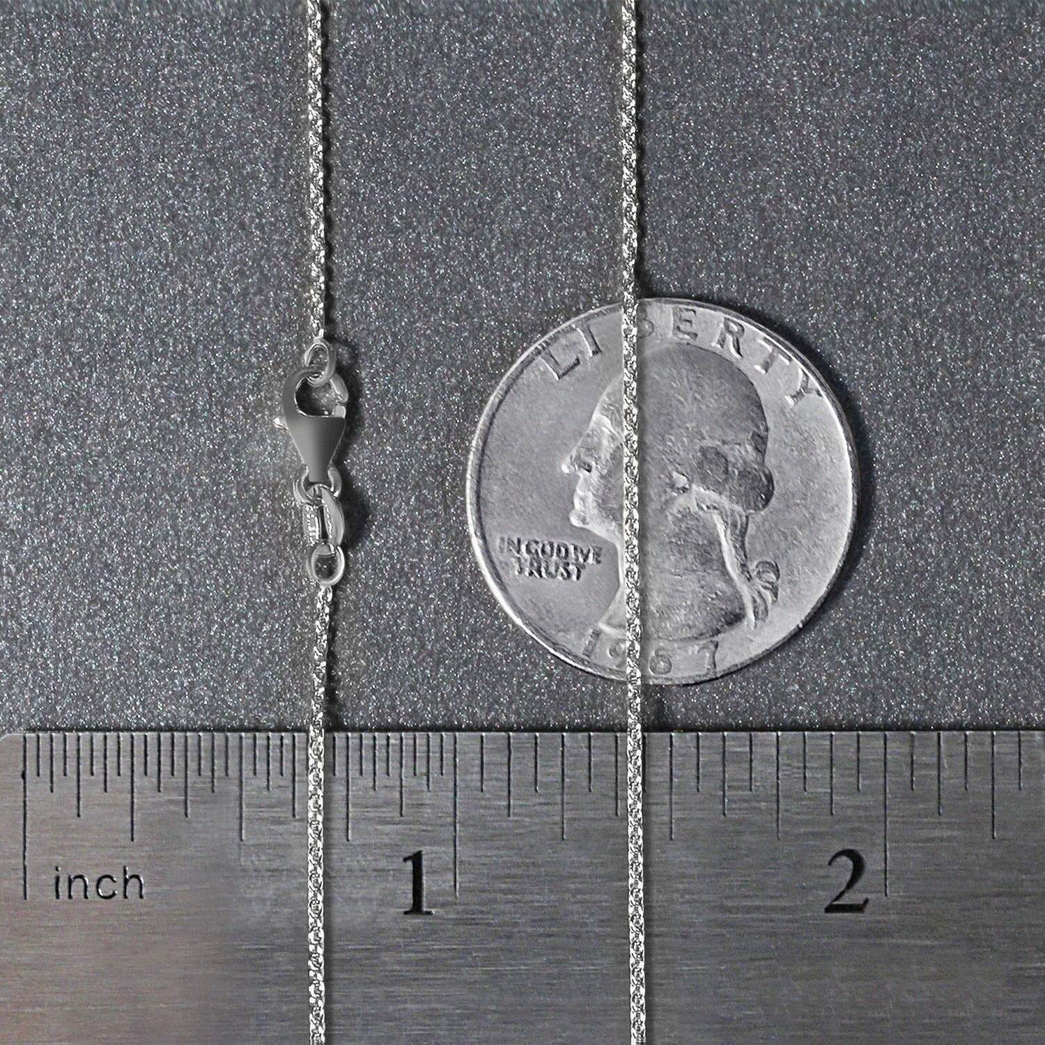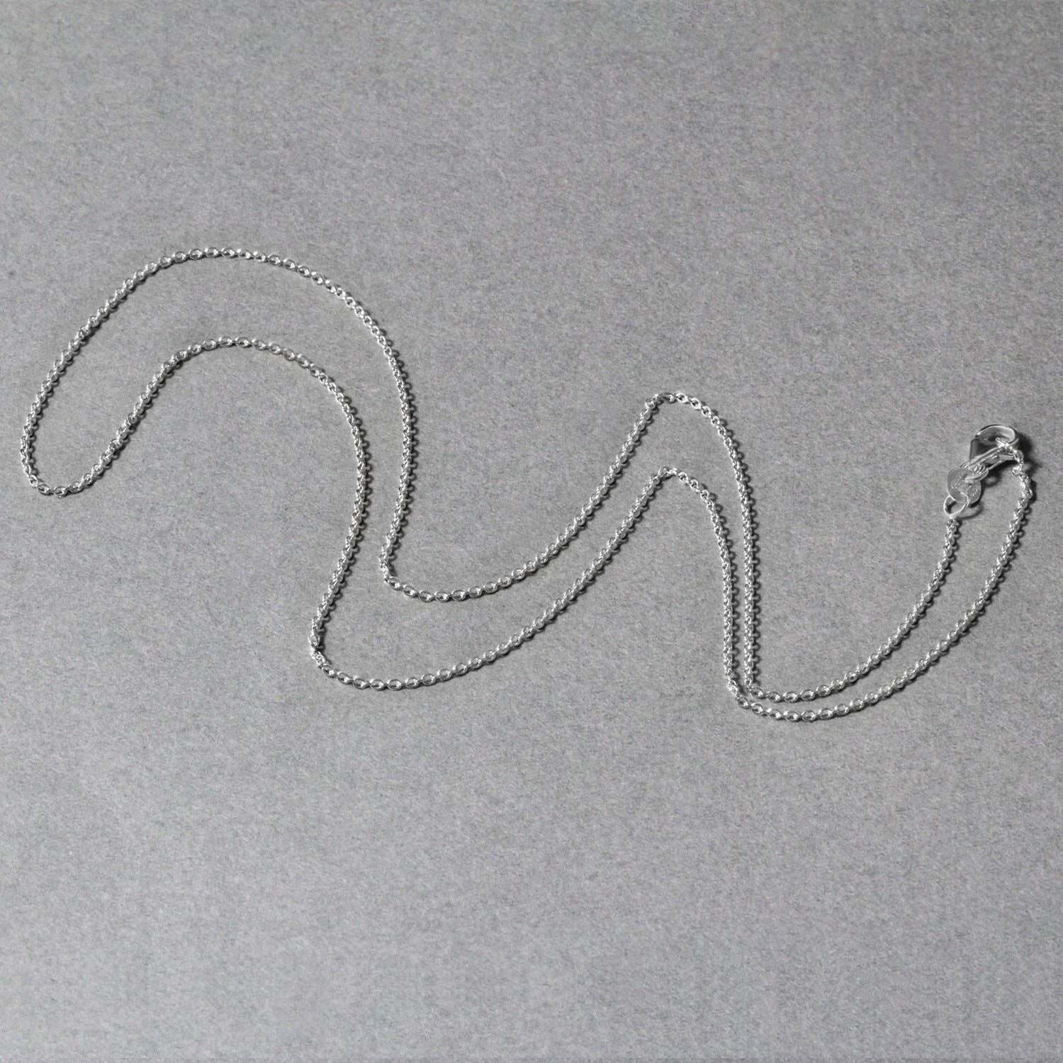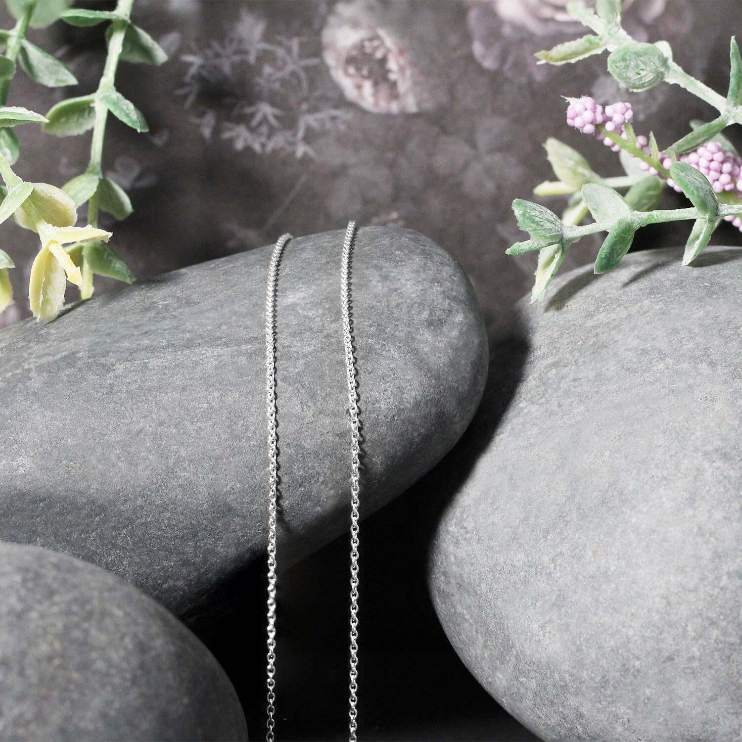 This round cable link chain comes in 14k white gold and has a width of 1.10 millimeters.