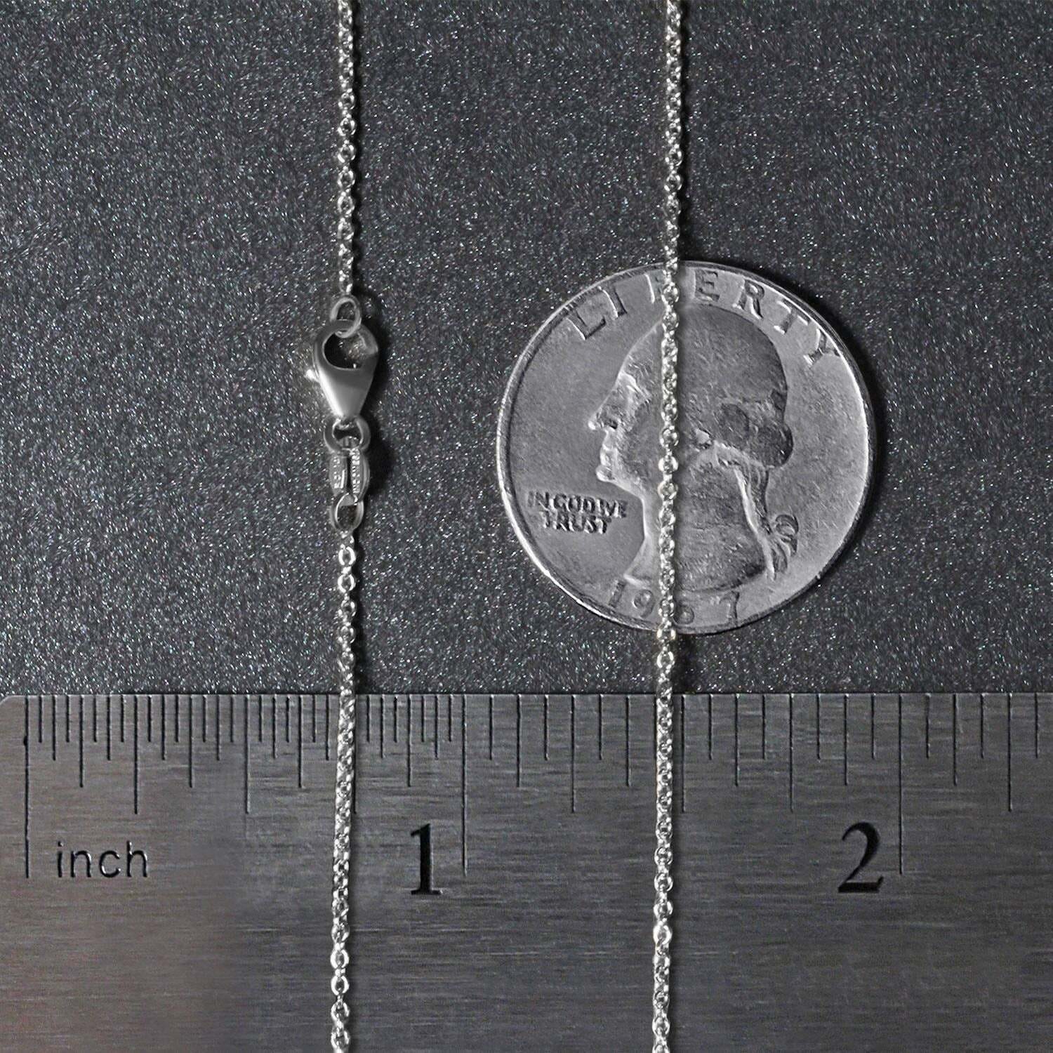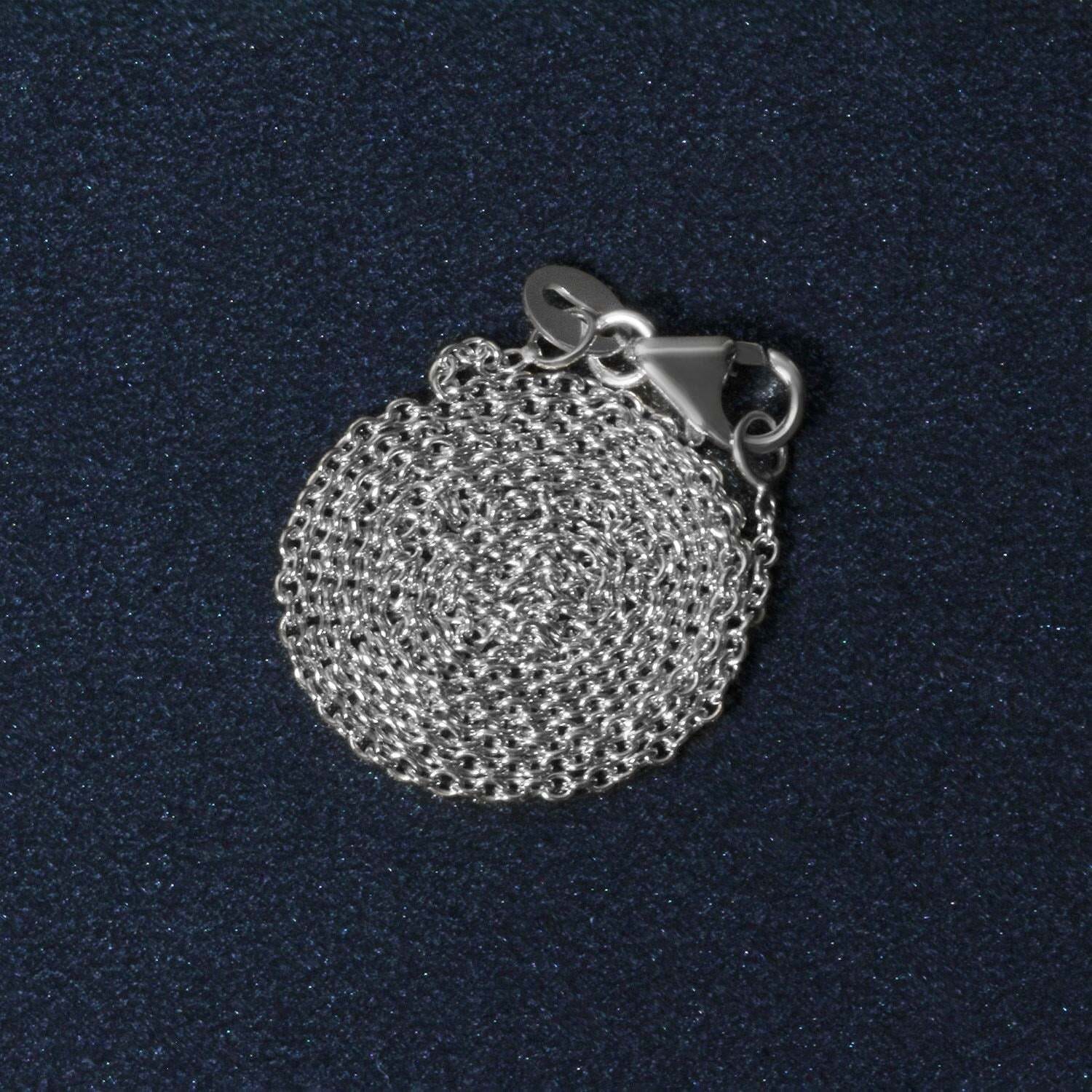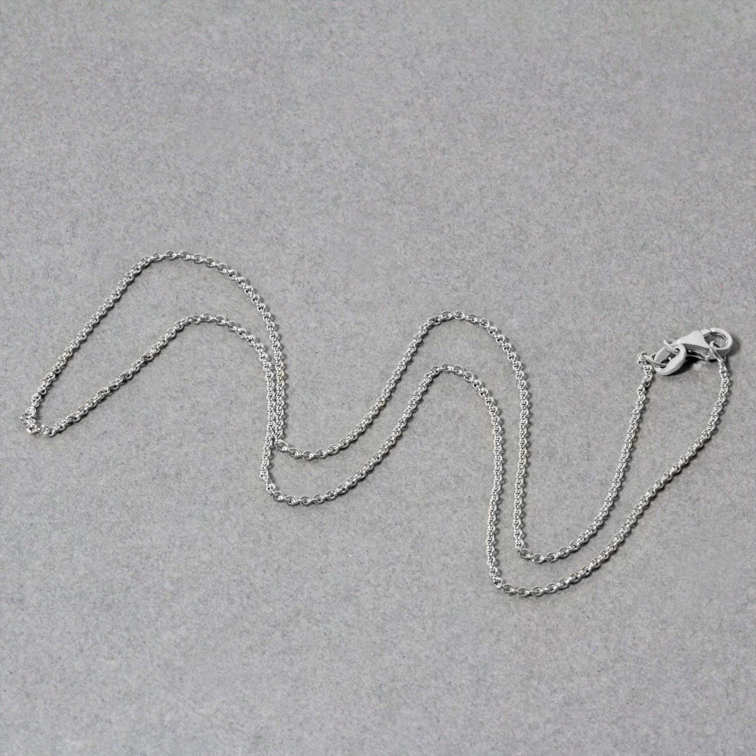 This round cable link chain comes in 14k white gold and has a width of 1.2 millimeters.