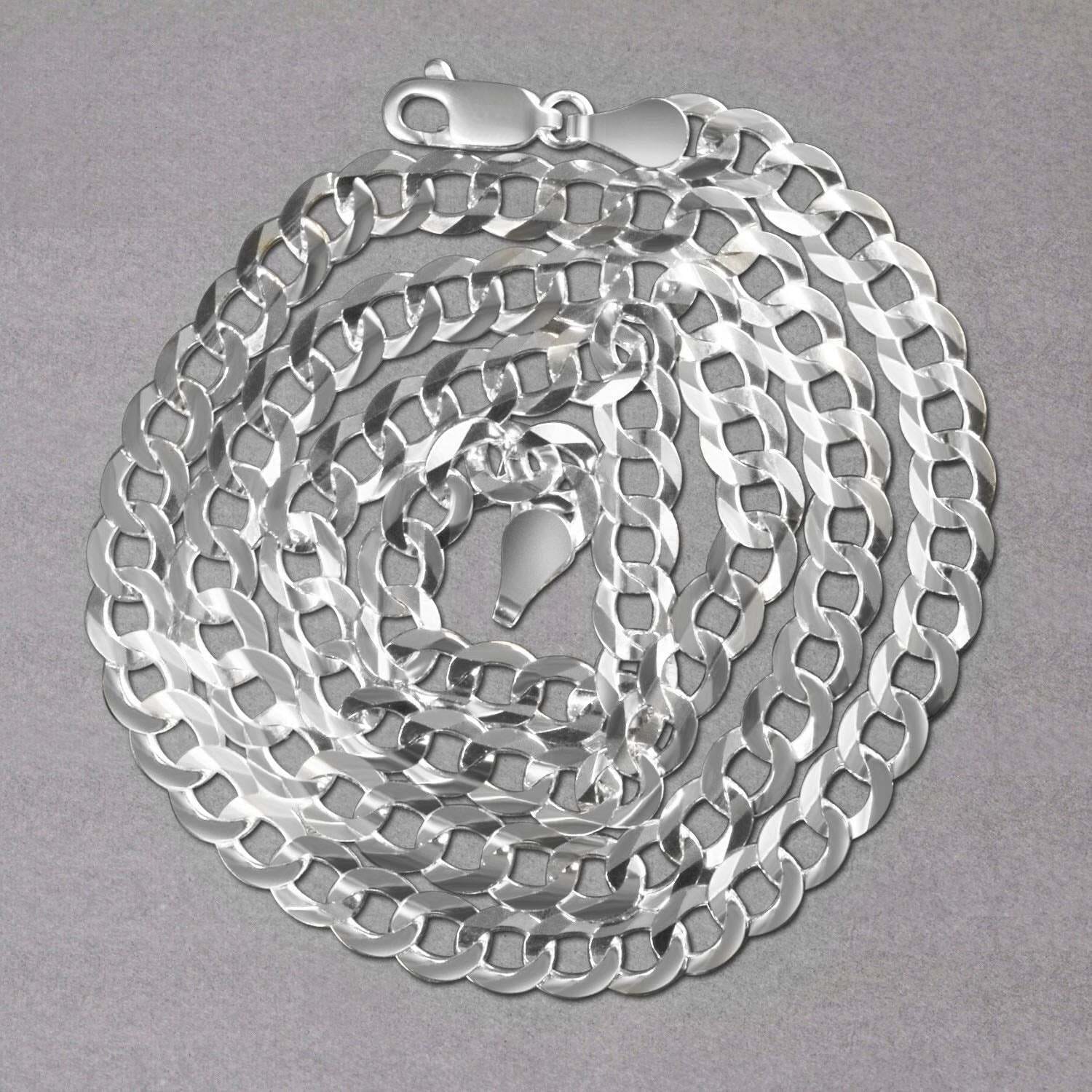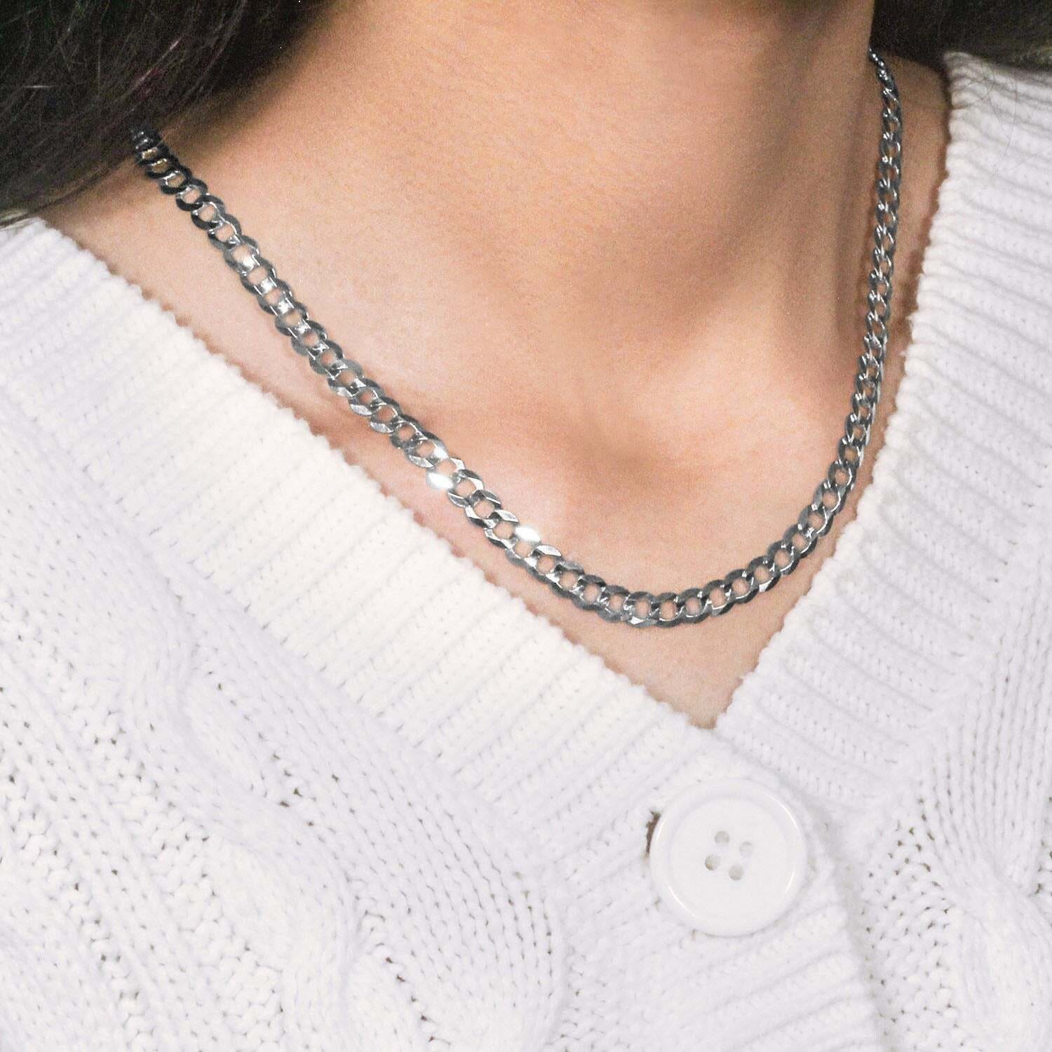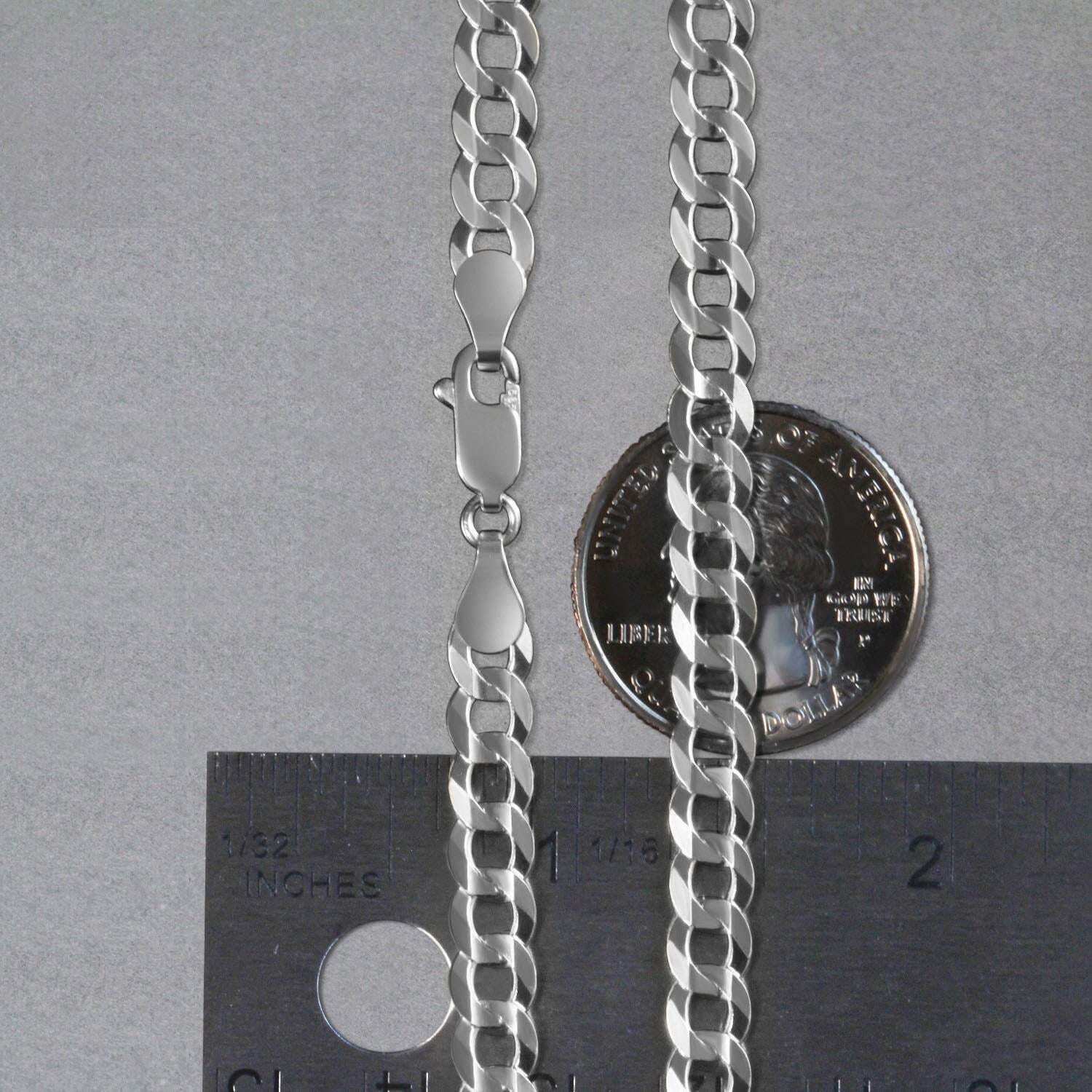 This solid curb chain comes in 14k white gold and has a width of 5.70 millimeters.